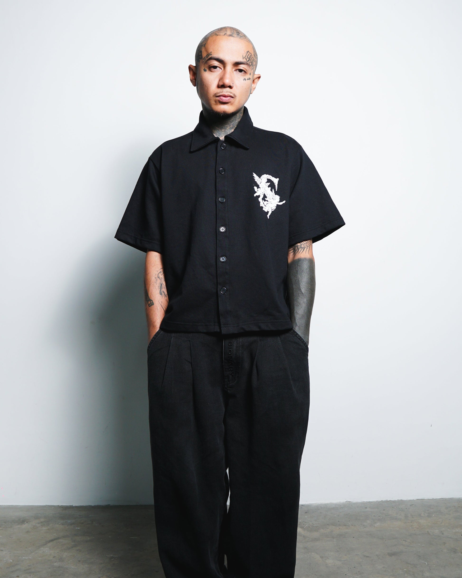 Cut from soft yet durable French terry, the Gamblers Club Polo Boxy Crop is built for those who play bold. Its cropped, boxy fit delivers a relaxed street edge while the classic polo collar keeps it refined. Finished in jet black with a clean silhouette, this piece blends comfort, versatility, and statement-making style—made for risk-takers who stand out without trying.